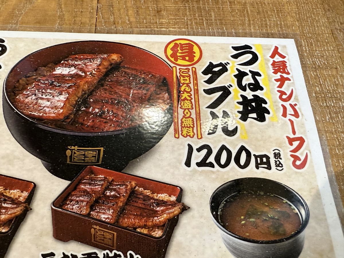 メニュー表にも記載されていますが、今回人気ナンバーワンの『うな丼ダブル』をいただいてみたいと思います!