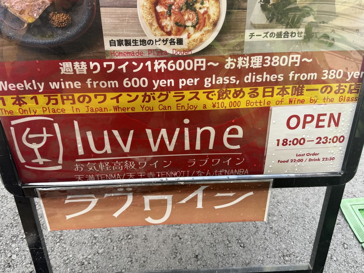 お店の方の説明によると、夜は『luv wine(ラブワイン)』というお気軽高級ワインバーとして営業しており、難波エリアでワインを気軽に楽しんでほしいとのことです!