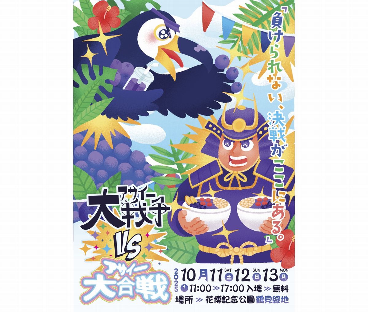 さらに2つ目のイベントとして、2025年10月11日(土)~13日(月・祝)にかけて、『アサイー大戦争VSアサイー大合戦』も同じく『花博記念公園 鶴見緑地』で開催されます!