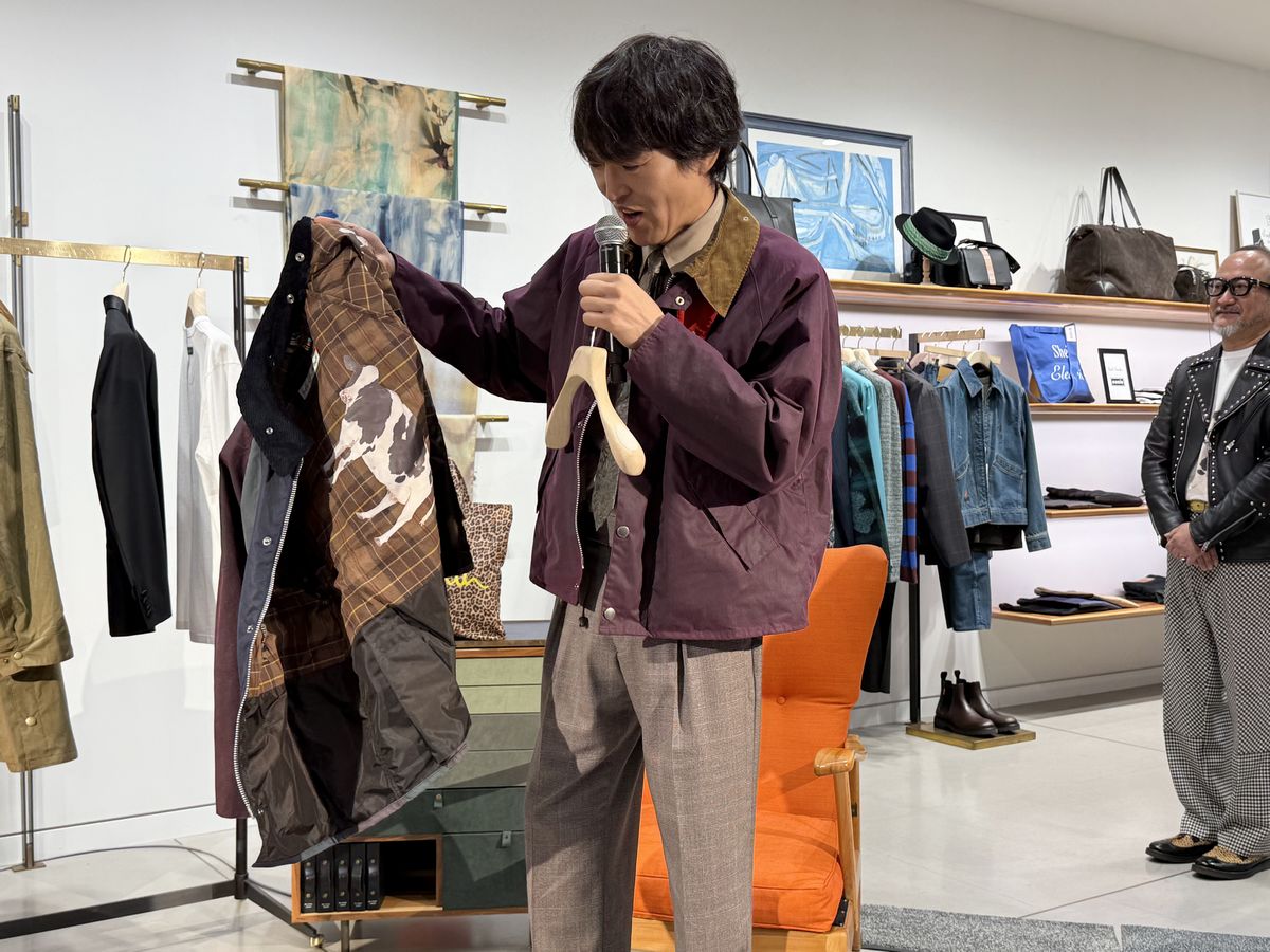 メディア発表会終了後も、千原ジュニアさんは「Paul Smith Loves Barbour」のブースで試着などをされていました!