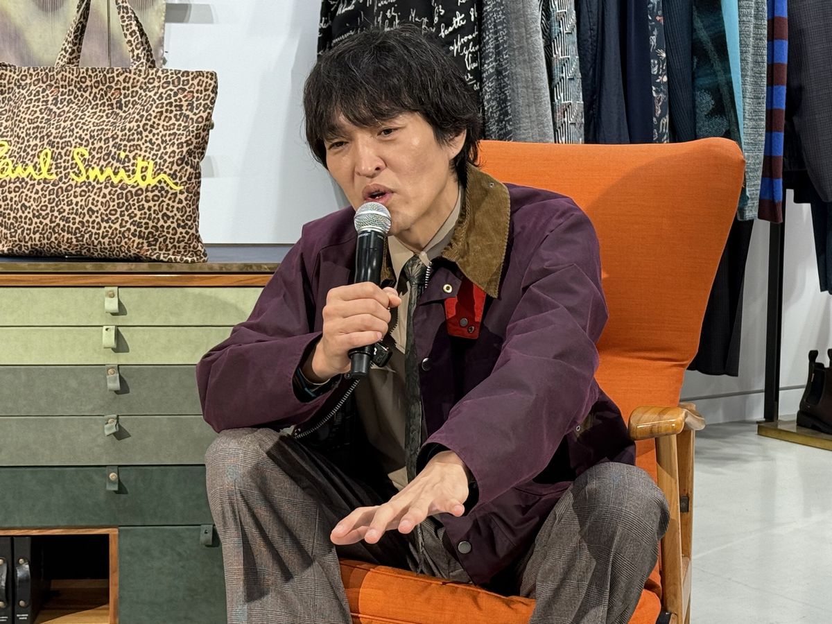 トークでは、若い頃からポール・スミスは身近にあり、年を重ねた今もサラッと着ることができるので愛用しているブランドのひとつと述べられます。