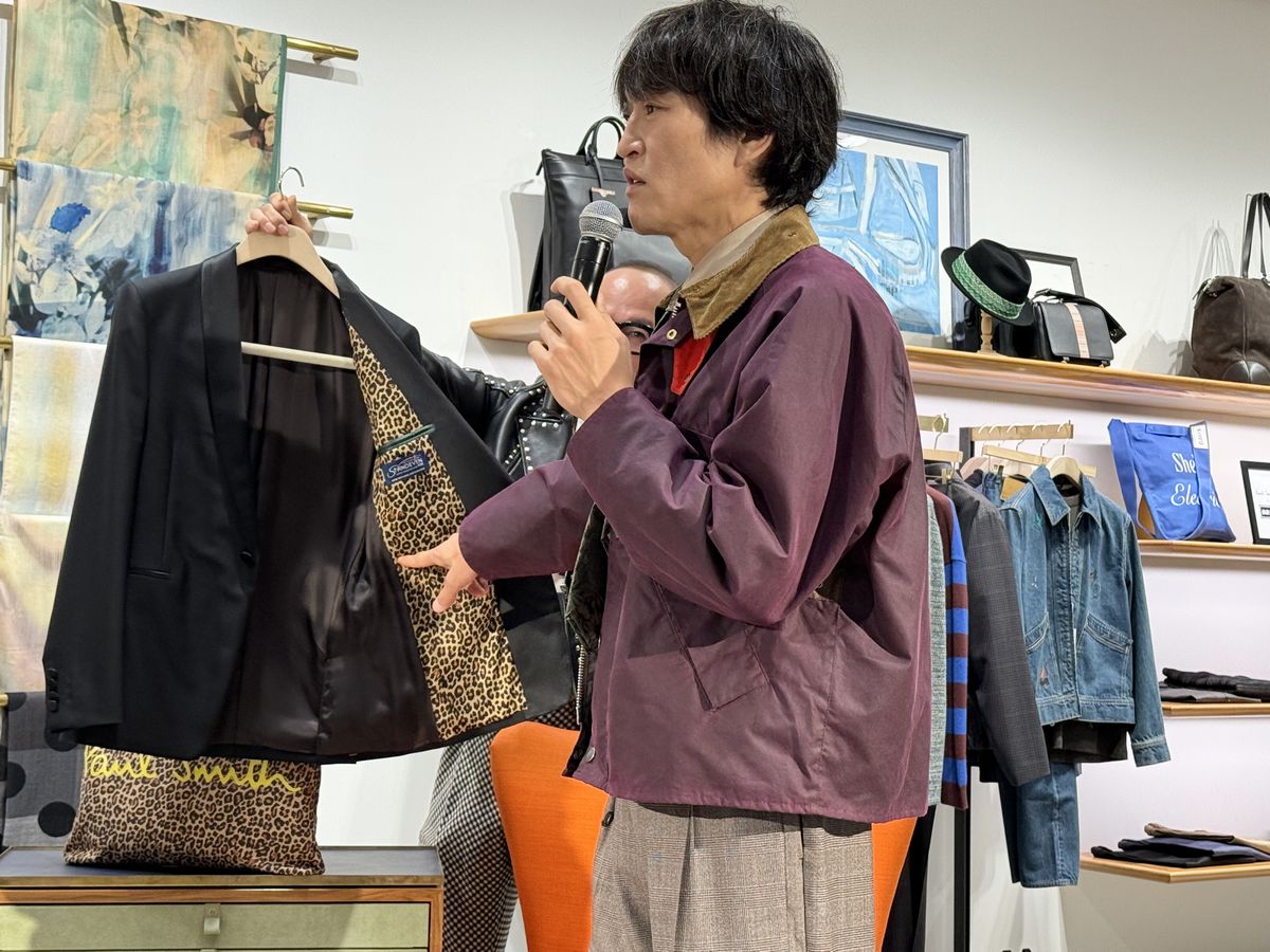 千原ジュニアさん、さっそく「Paul Smith Loves Barbour」のジャケットを着用されており、ジャケットの裏地のデザインの細かさに驚かれています。