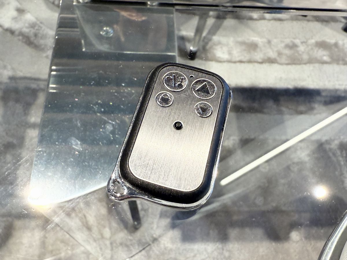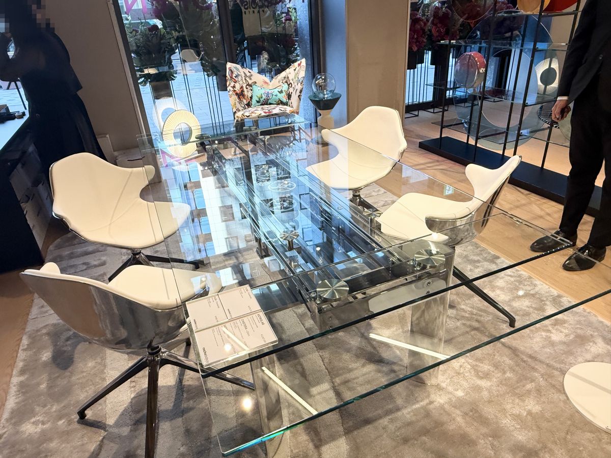 写真では伝わりにくいですが、リモコンのボタンを押すと、ガラスのテーブルが自動で伸縮する仕組みになっていました!