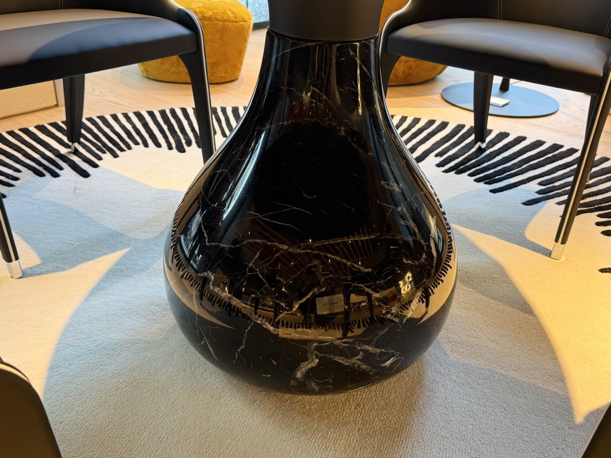 担当の方の説明によると、テーブルの脚となっている大理石は、200キログラムの重さがあるそうです!
