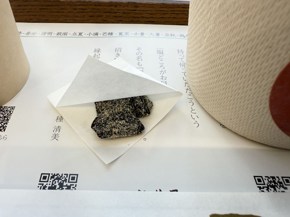 『赤福ぜんざい』には、ほうじ茶と塩ふき昆布が付いていました。