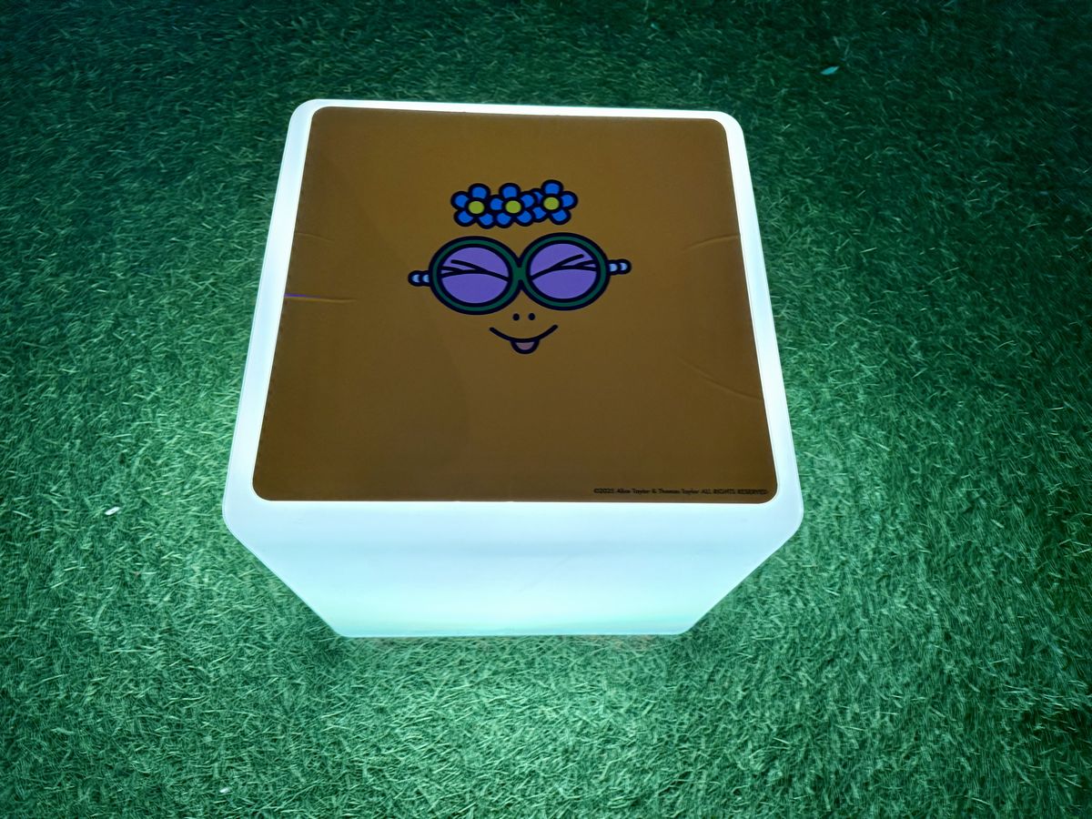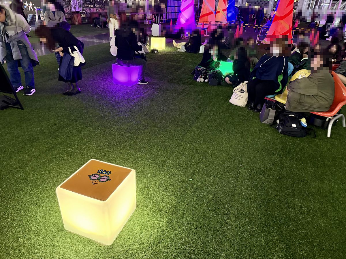 バーバパパファミリーが光る椅子となり、周辺を色鮮やかに照らしています。