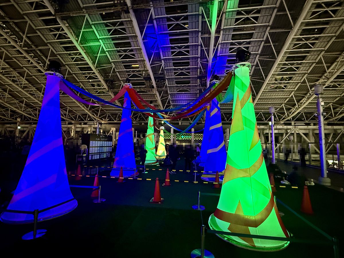 こちらはメインエリア『Crazy Tune Tunnel』で、トンネル型の光空間が頭上から足元まできらめく光の中に音楽が重なり、訪れた人々が足を止める仕掛けとなっていました。