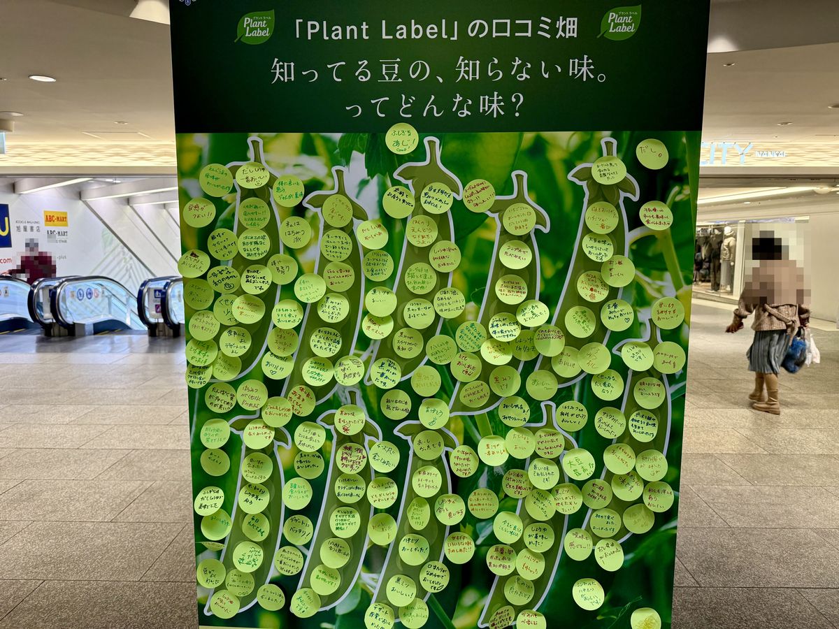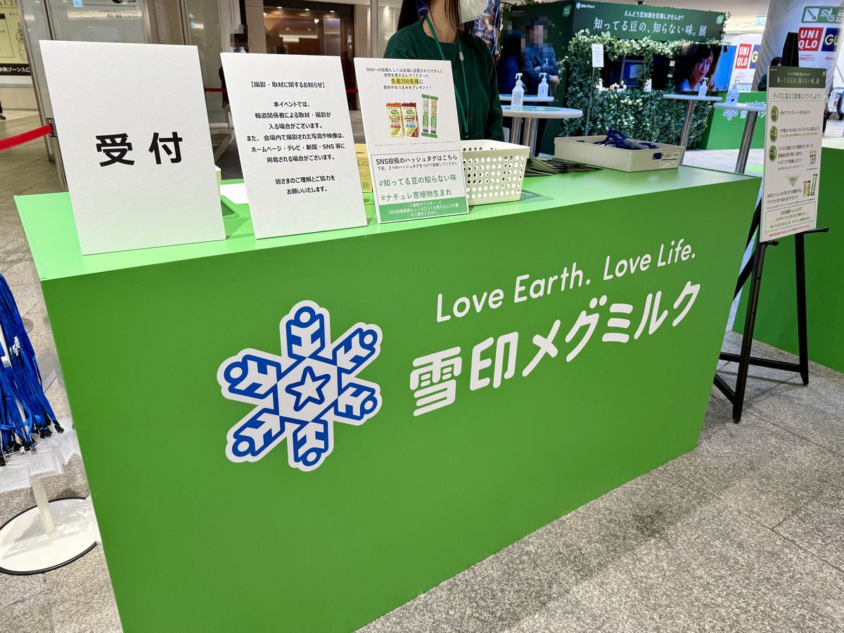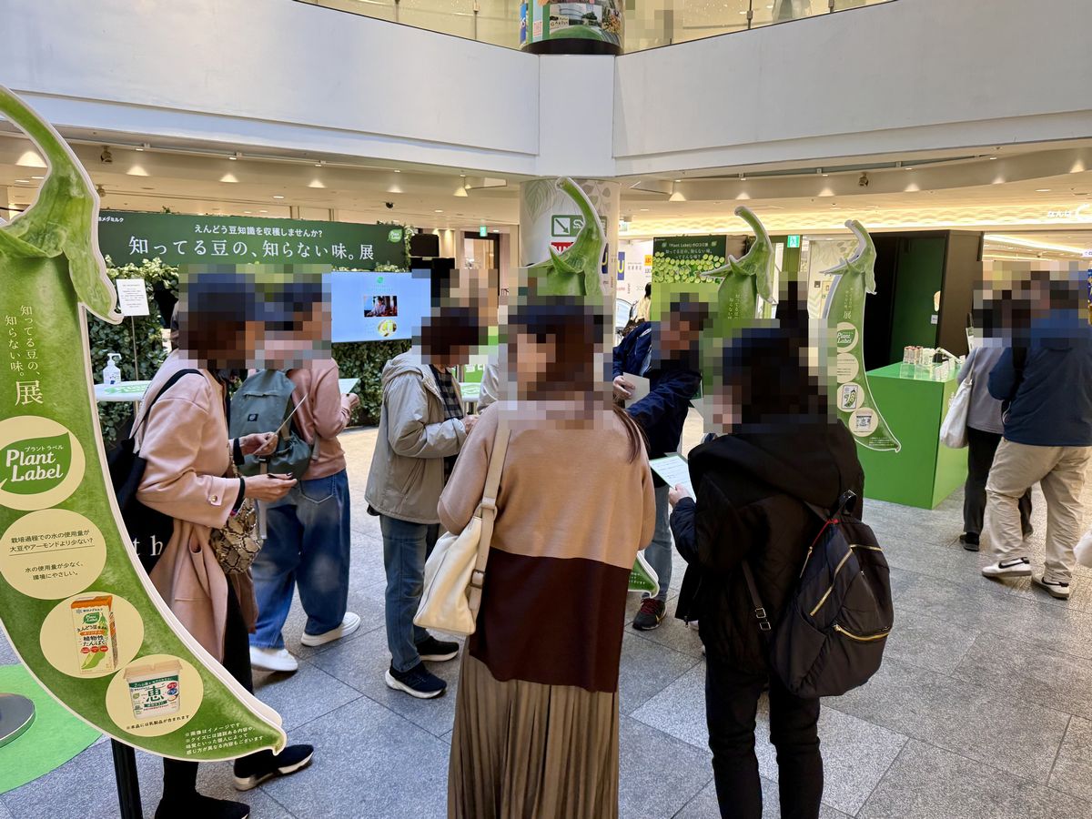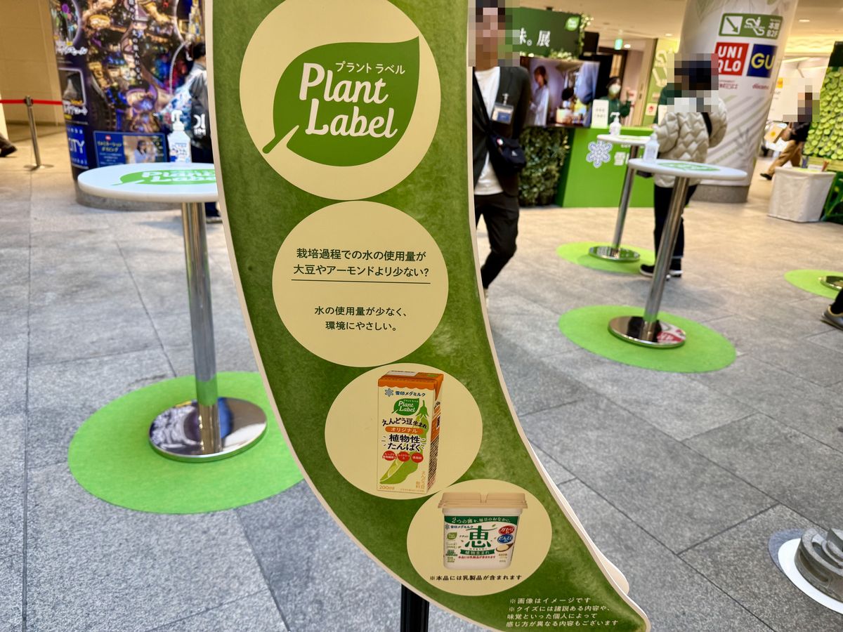 「知ってる豆の、知らない味。展」は、植物由来の食品ブランド「Plant Label(プラント ラベル)」を展開する雪印メグミルク株式会社が主催となっており、えんどう豆を主原料にしたクイズに挑戦し、回答するとプラントベース食品の試食ができるポップアップイベントです。
