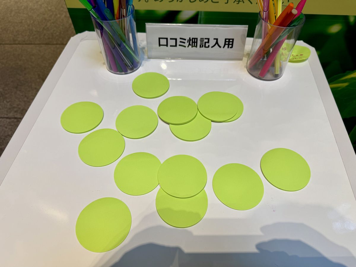 試食後、豆に見立てた丸いメッセージカードにメッセージを記入することができます。