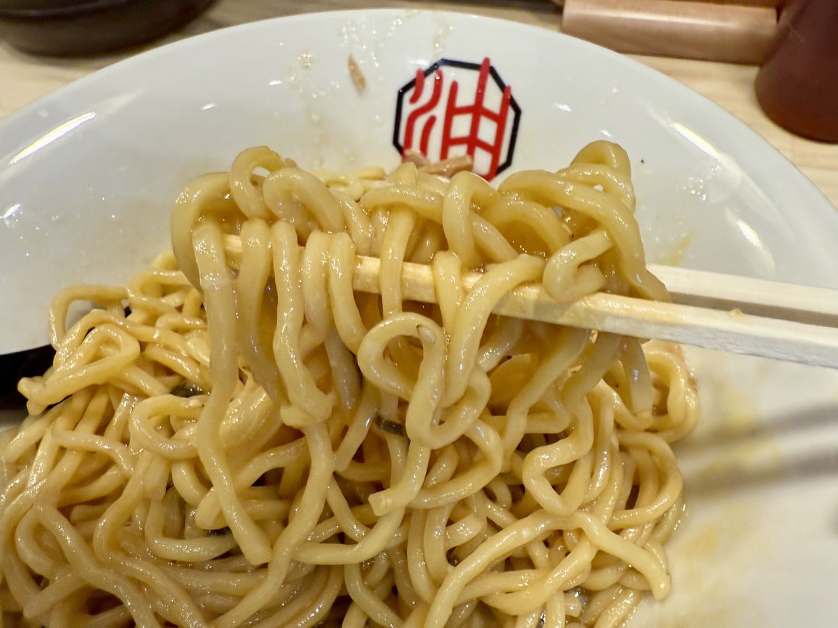 モチモチ食感の太麺と特製ダレの相性が良く、そこに半熟玉子が合わさりまろやかな風味を味わえました!