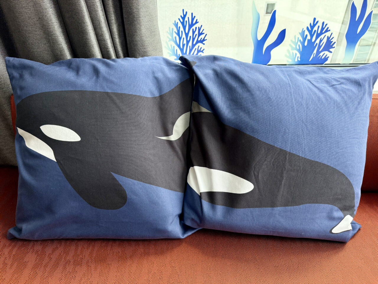 こちらはシャチのイラストが描かれたクッションです。
