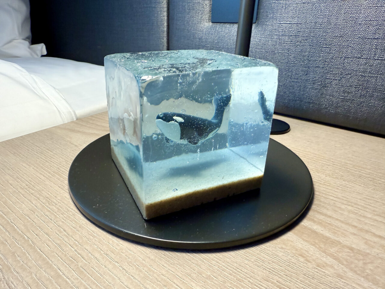 こちらは海中ジオラマで、コンパクトなサイズながらも力強く泳いでいるシャチの迫力を再現しているオブジェです。