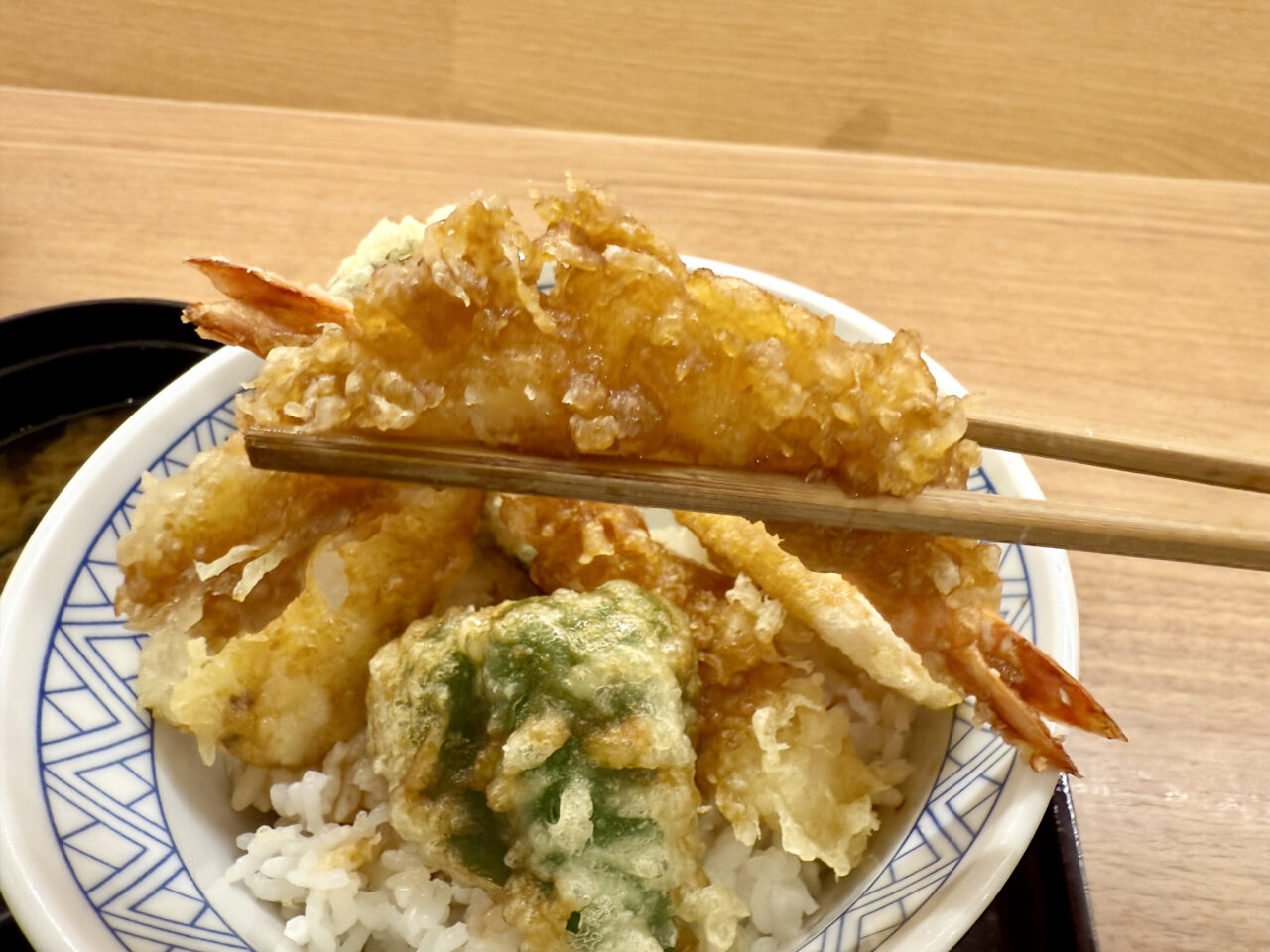 今回特別に、秘伝のタレをかける前の天ぷらの状態を見せていただいたのですが、天ぷらは丁寧に揚げられており、揚げたてのサクッとした軽やかさが見た目からも伝わってきます!