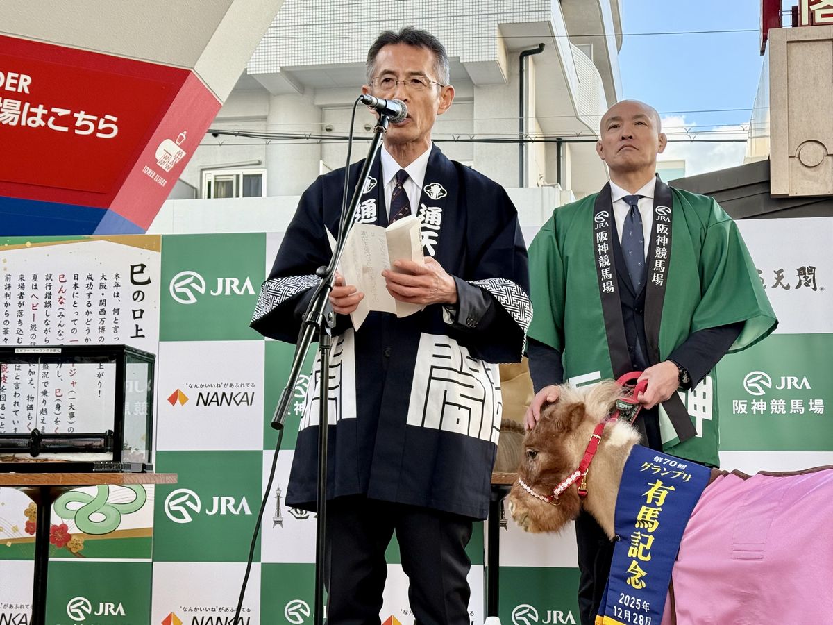 続いて特別協賛のJRA阪神競馬場 場長・友田さんの挨拶があり、「阪神競馬場は2025年3月にリニューアルオープンし、幅広い世代の方が来場していただけるようになり、通天閣のようにたくさんの方から親しんでもらえる名所にして参ります。」と述べられました。
