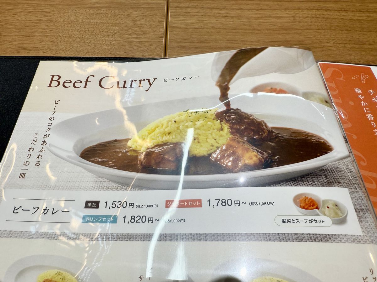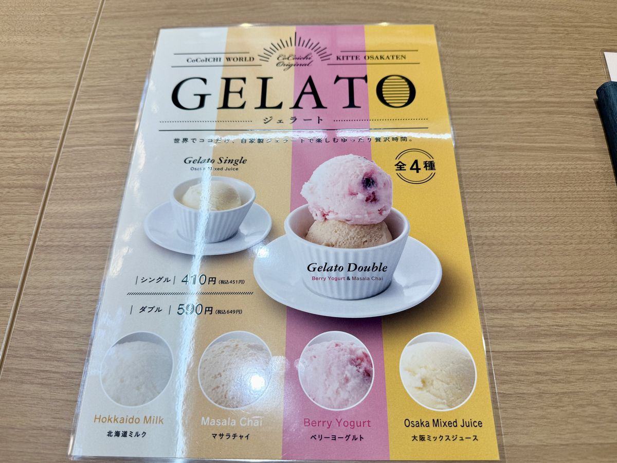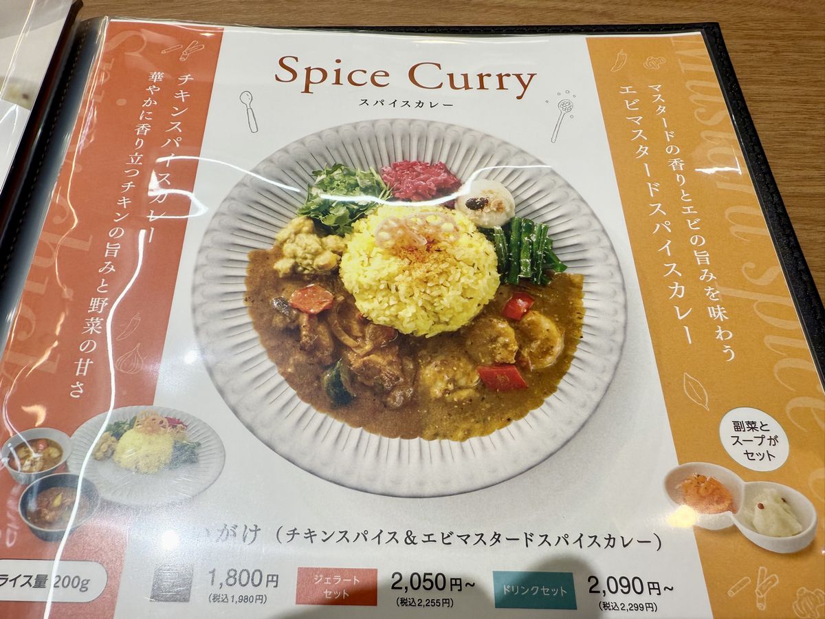担当の方の説明によると、『ビーフカレー』・『スパイスカレー 合いがけ(チキンスパイス&エビマスタード)』・自家製『ジェラート』の3品はKITTE大阪店限定メニューとなっているそうです!