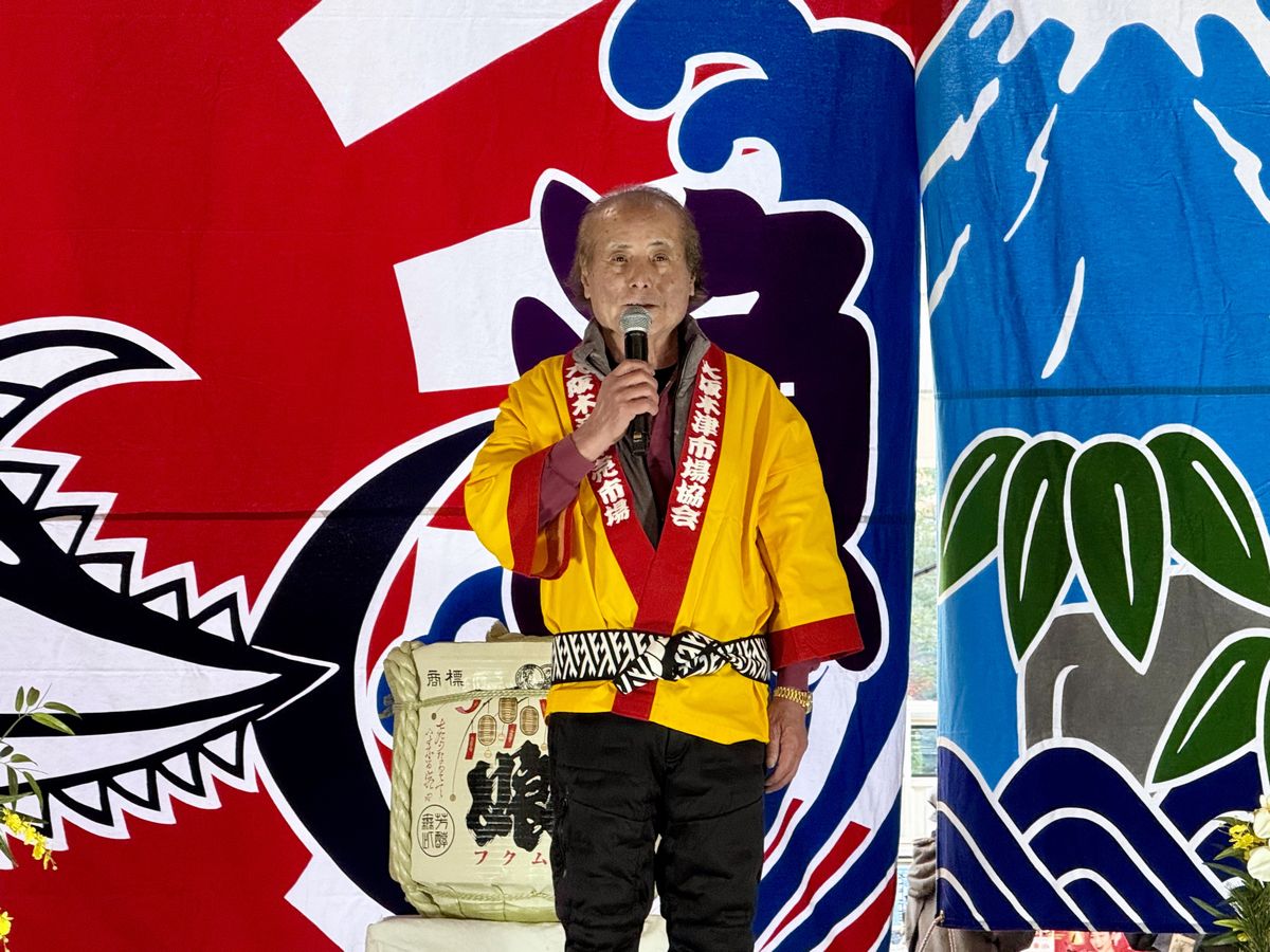 式典では大阪木津卸売市場 市場協会 会長・前 俊次さんや来賓の方が登壇し、祝辞を述べられました。
