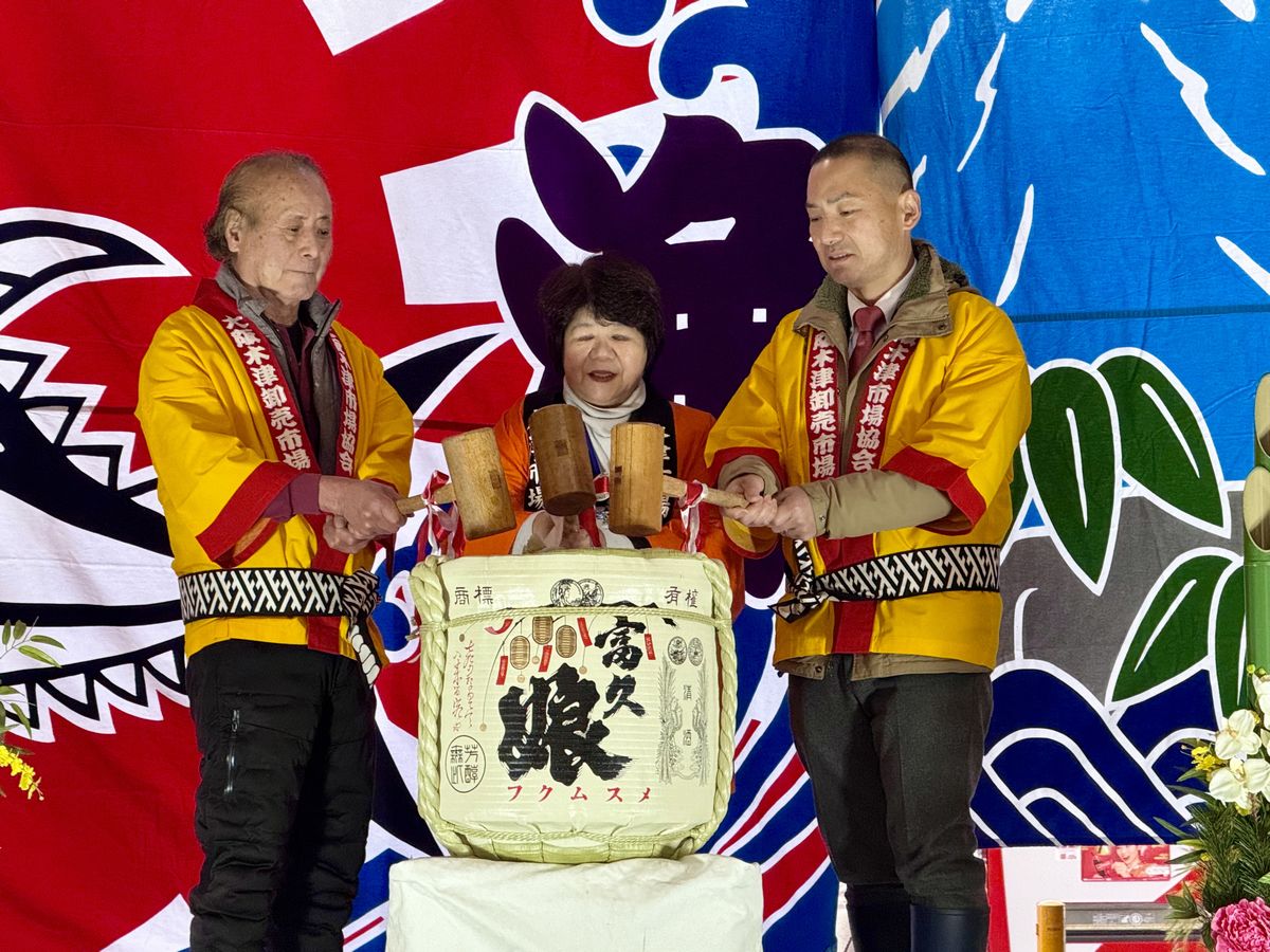 福娘のみなさんが選んだ大きな鯛が持ち上げられると、会場からは拍手が上がりました。