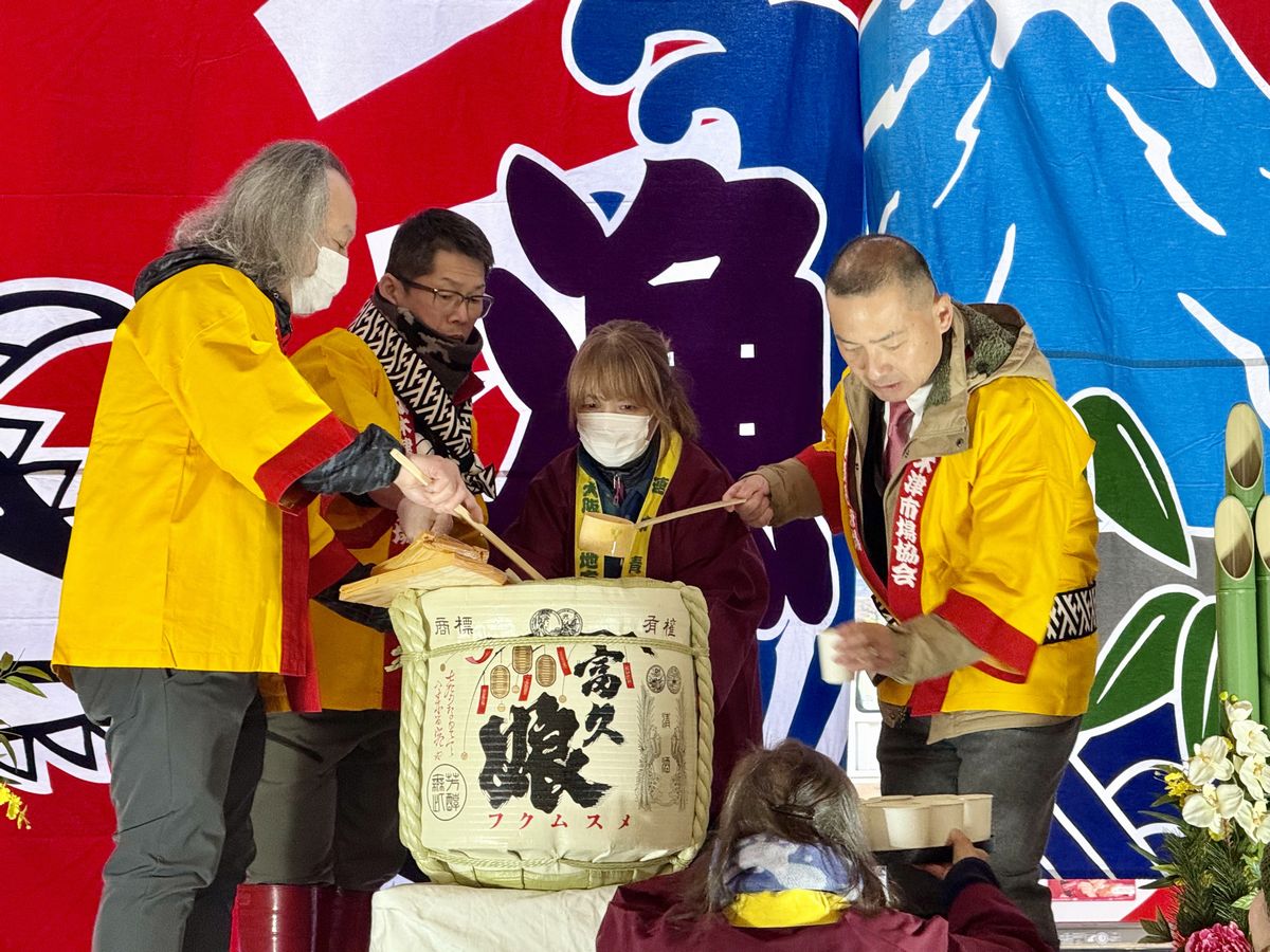 続いて鏡開きも実施され、「せーの、よいしょー!」の掛け声とともに、無事に開かれました!