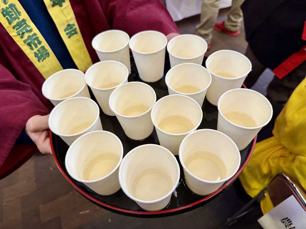 鏡開きで使われた樽酒は、振る舞い酒として配られます。