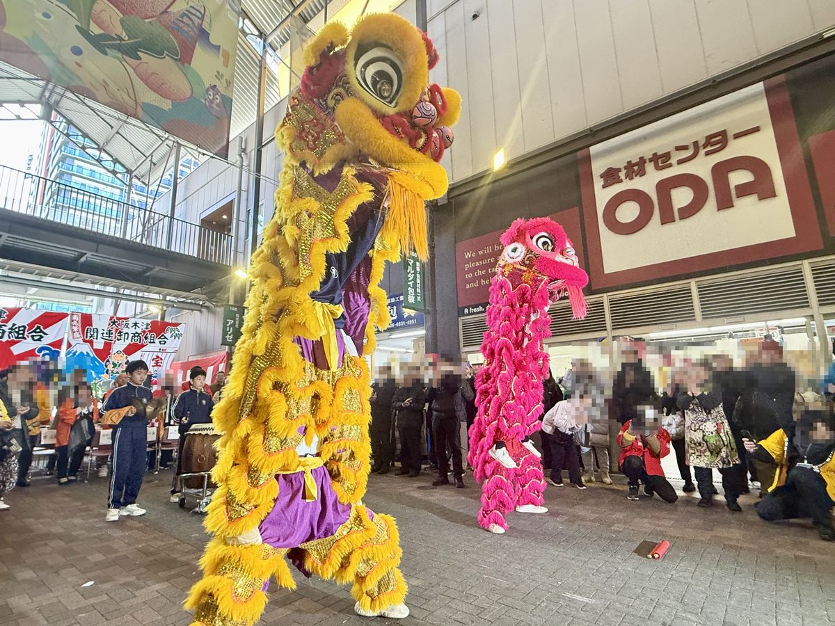 続いて大阪中華学校のみなさんによる獅子舞が披露され、迫力の演舞に大きな歓声が上がっていました。