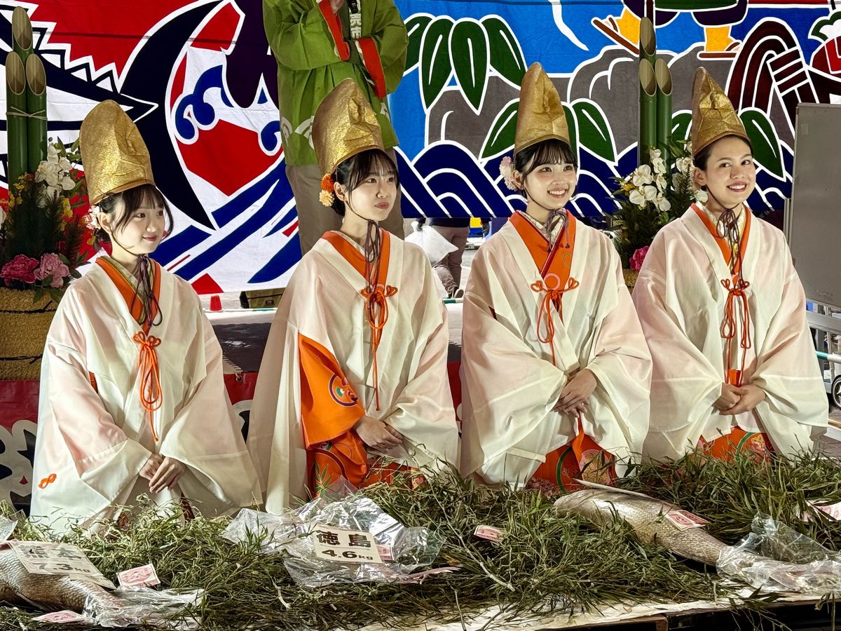 続いて福娘のみなさんが、奉納用の鯛を選定します。