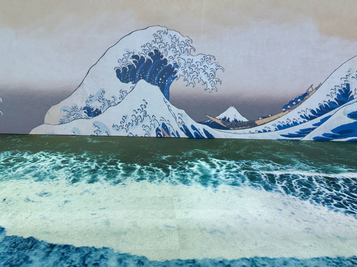 葛飾北斎の『冨嶽三十六景 神奈川沖浪裏』などの海が立体的な動きで映し出されています。
