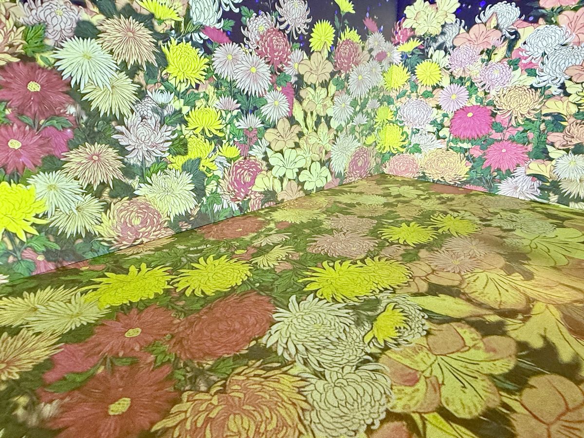 色鮮やかな花の絵が空間全体に映し出され、まるで浮世絵の花畑にいるような演出となっています。