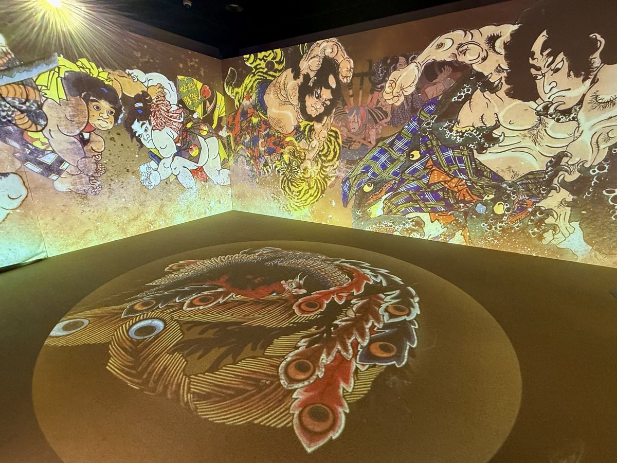 これまでの華やかな浮世絵の映像空間とは打って変わって、こちらは豪傑で力強い浮世絵がメインの映像空間となっています。