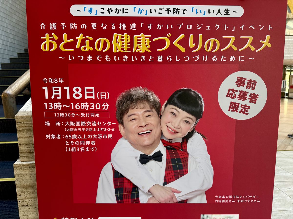 【大阪市天王寺区】吉本新喜劇の内場勝則さん・未知やすえさんが登壇!1月18日、「大阪国際交流センター」で「おとなの健康づくりのススメ~いつまでもいきいきと暮らし続けるために~」が開催されました!