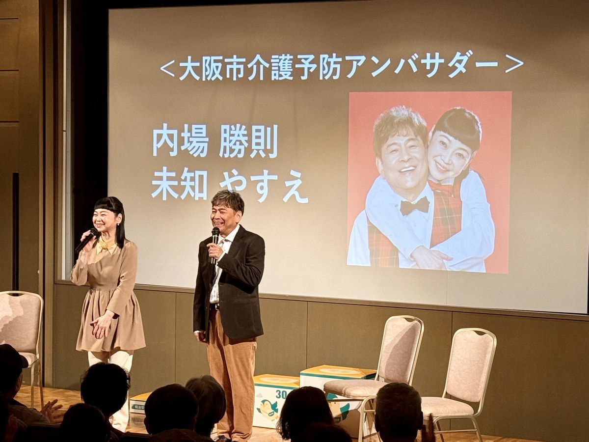 トークセッションのゲストとして、大阪市介護予防アンバサダーを務められている吉本新喜劇の内場勝則さんと未知やすえさんが登壇され、客席からは大きな拍手が上がりました!