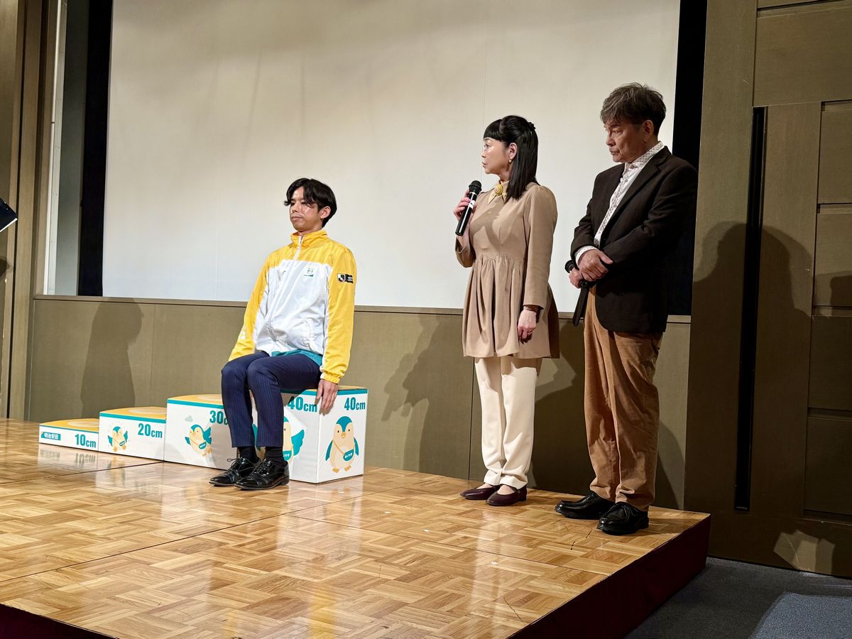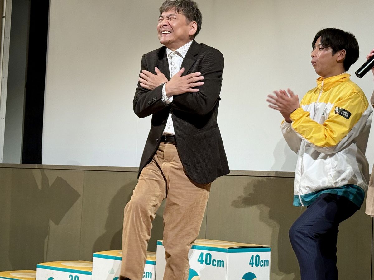 内場さんが40センチの台座で挑戦します。