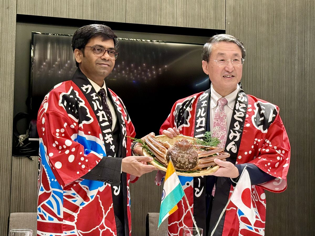 平井知事は「鳥取県は松葉蟹をメインに蟹の水揚げ量が全国一で、冬の時期は蟹取県(かにとりけん)としてアピールしています。今回のフェアで大阪の皆様にもぜひ鳥取の名産を存分に味わっていただきたいです。またインドと鳥取県は経済・文化の面で積極的に交流しており、ここからさらに絆を深め、鳥取の松葉がにをインドの食材のひとつになれるように広めて参ります。」と述べられました。