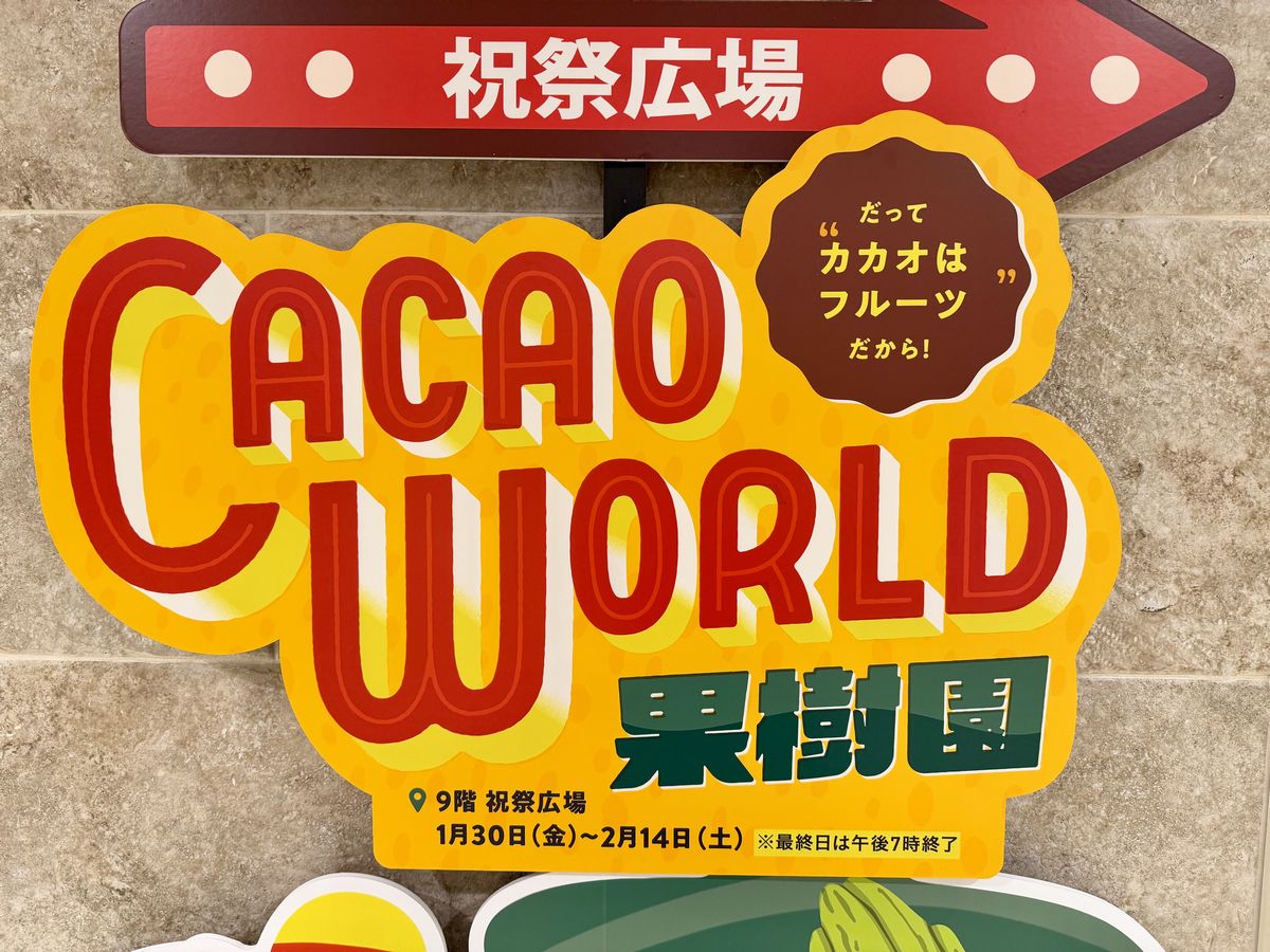 2026年1月21日(水)から1月29日(木)までは前半、2026年1月30日(金)から2月14日(土)までは後半に分けられており、後半の9階 祝祭広場では『CACAO WORLD果樹園』が展開されていました。
