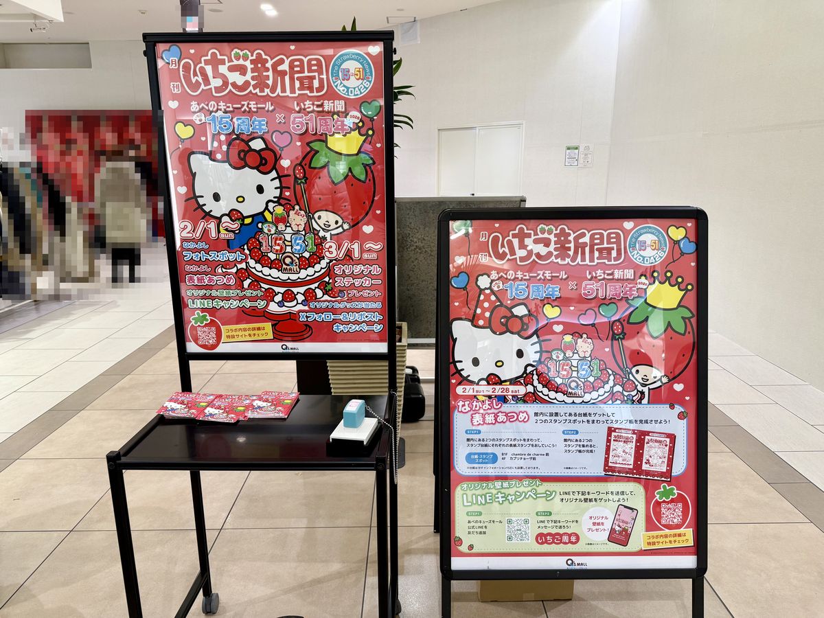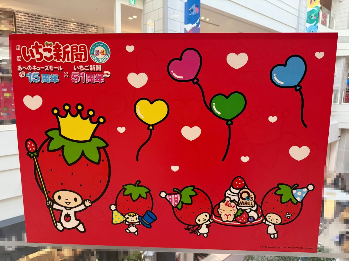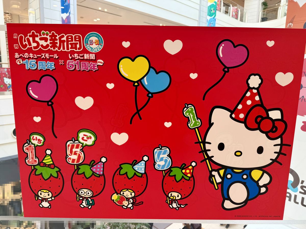 2026年2月1日(日)から4月21日(火)にかけて、あべのキューズモール15周年と月刊いちご新聞51周年を記念し、「ハローキティ」と「月刊いちご新聞」とのスペシャルコラボイベントが開催中とのことで、今回お邪魔させていただきました!