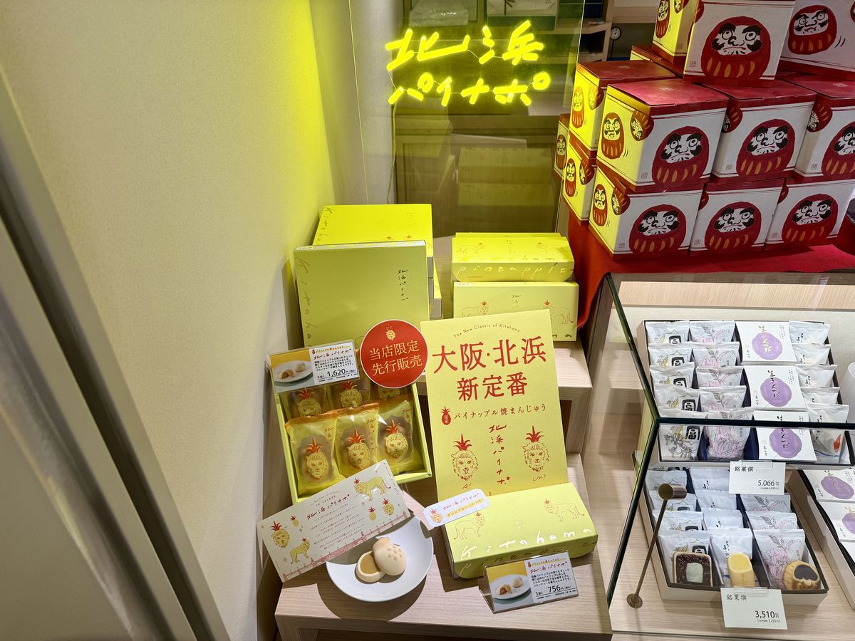 担当の方の説明によると、『北浜パイナポ』は、パイナップルあんをミルキーな生地で包んだ焼まんじゅうで、京阪淀屋橋店限定で先行販売している新商品となっているそうです!