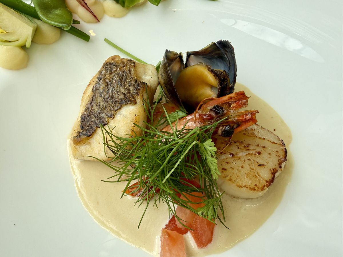 今回特別に、もうひとつのメインディッシュ『鯛、海老、ホタテ、ムール貝のマリニエールソース』も用意していただきました!