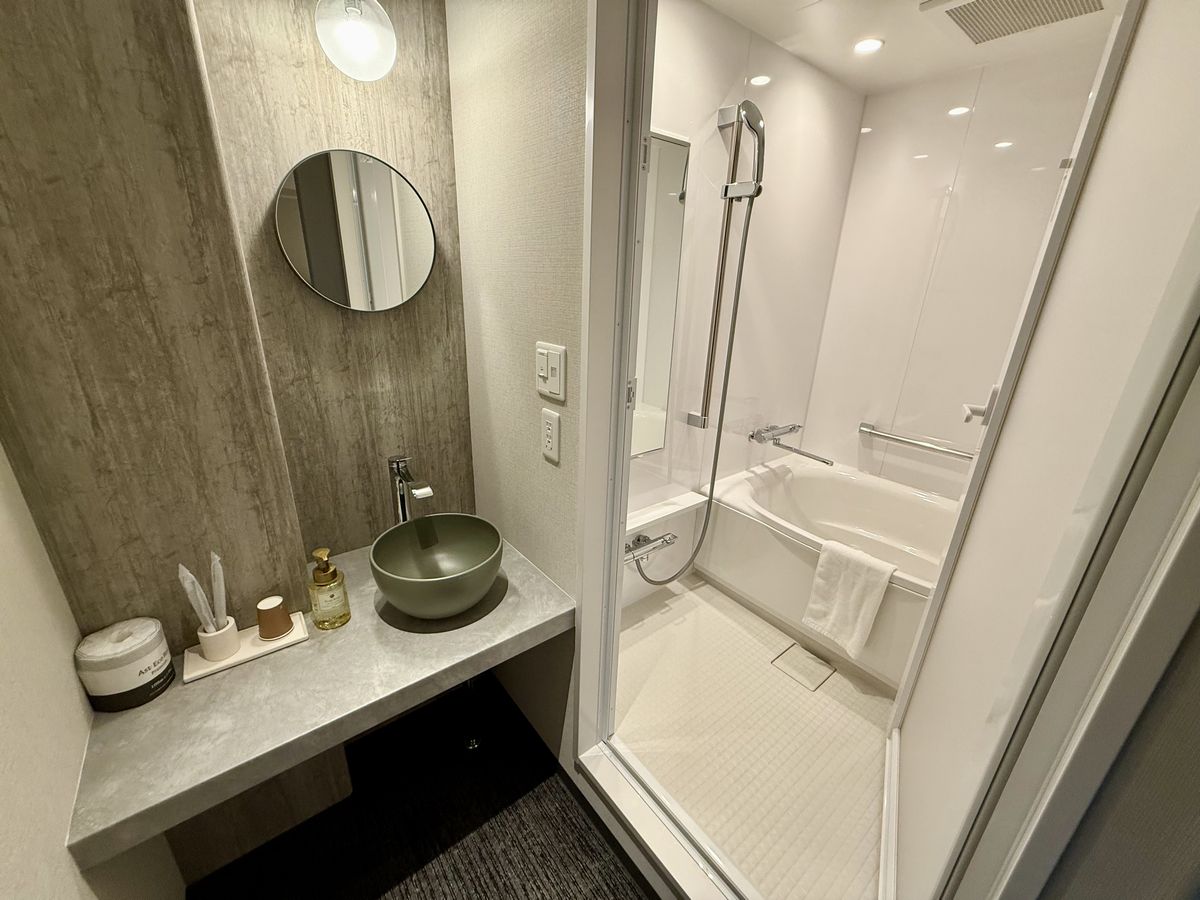 洗面台とバスルームも、コンパクトにまとまっていて清潔感があります。