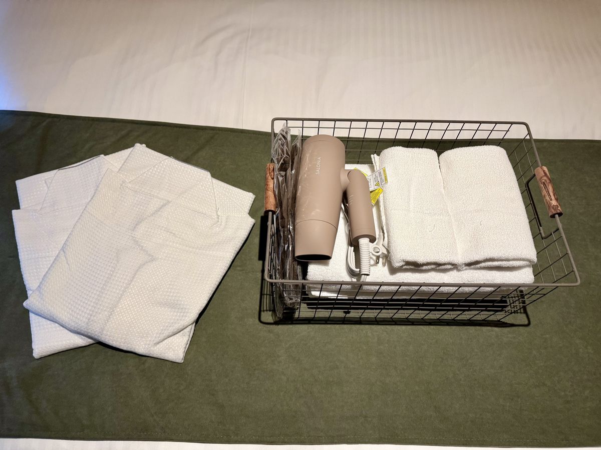 こちらにはガウンとタオル類がまとめて置かれています。