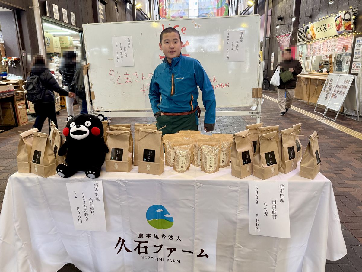 こちらのブースでは熊本県産のもち麦やお米が販売されていました。