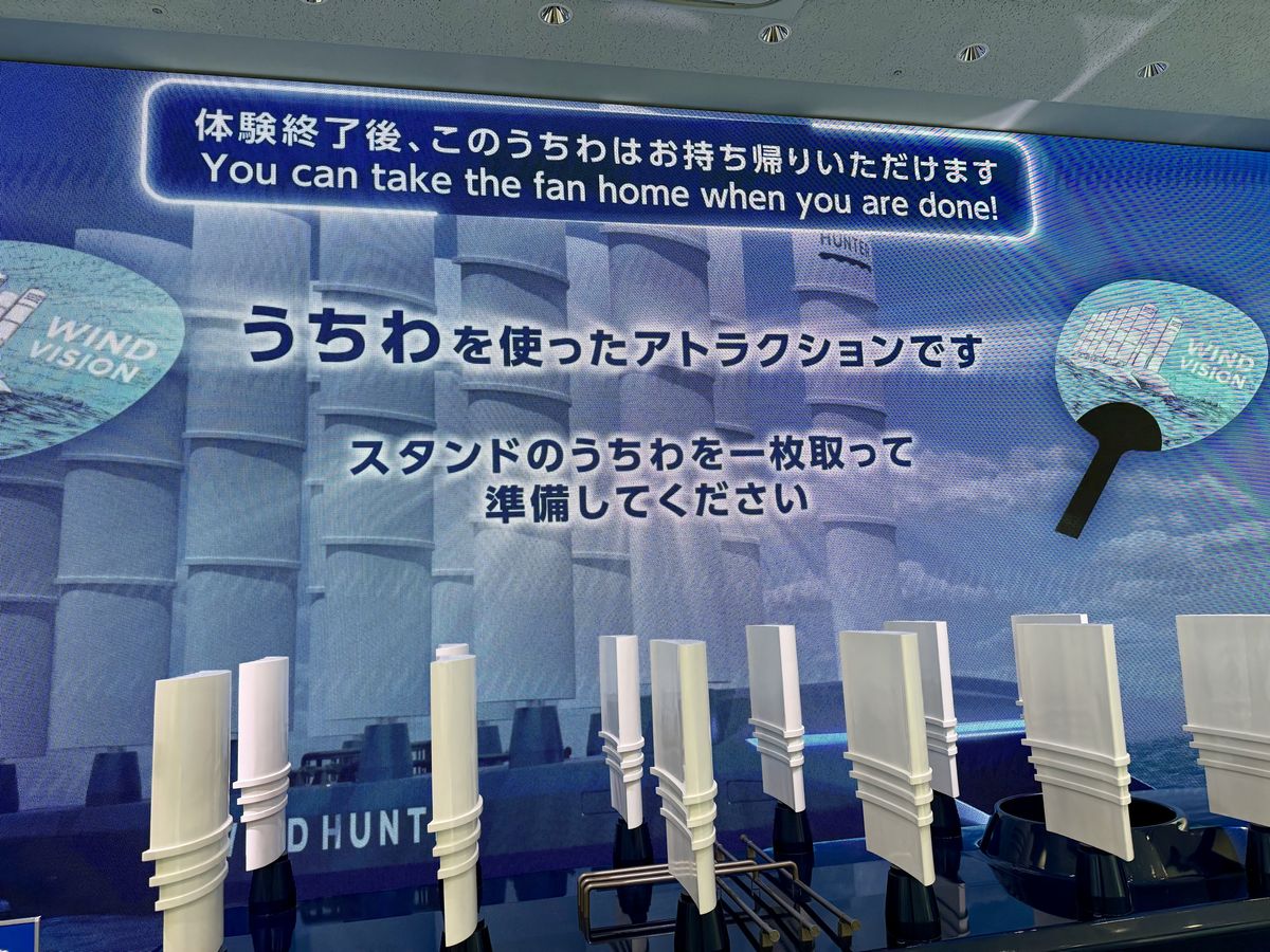 「ふねしる」でも万博会場で好評を集めた、うちわで風を送り帆が動き出すアトラクションを体験することができます!
