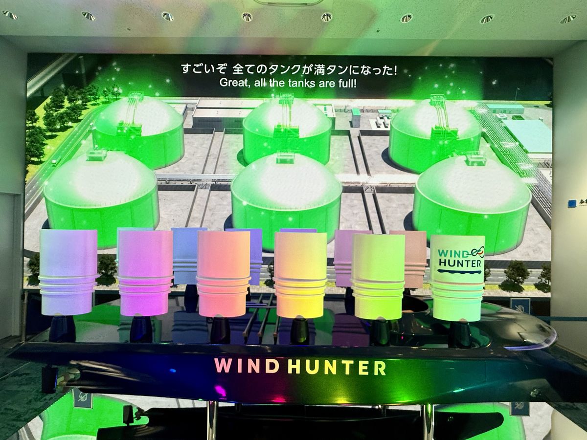 「ふねしる」上田館長の説明によると、「万博ではリサイクルされた紙のうちわでしたが、今回リサイクルされたプラスチックのうちわに変更したのでうちわの強度が増し、本気を出せば1人でも水素ゲージを満タンにできます。」とのことです!