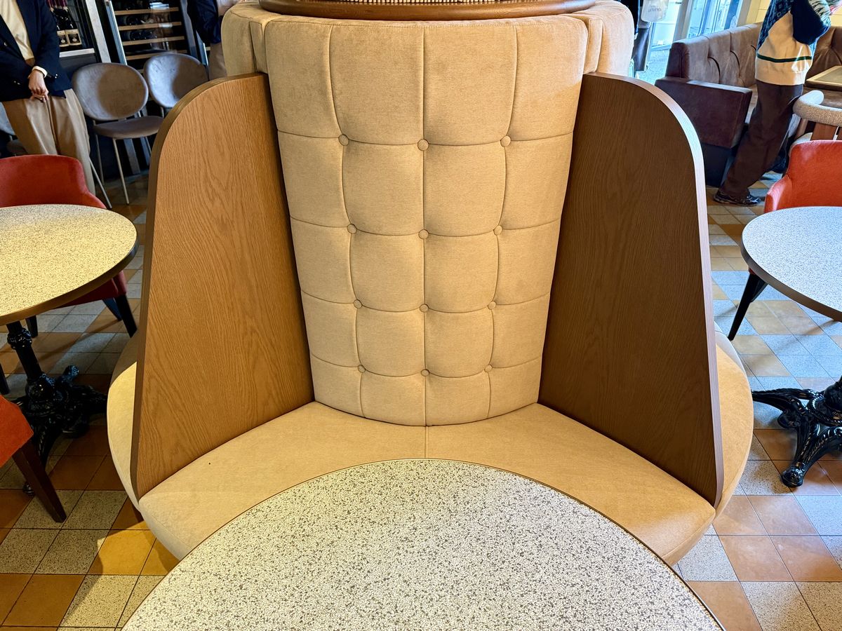 既存の円柱を活かしたシンボリックなベンチも特徴的です。