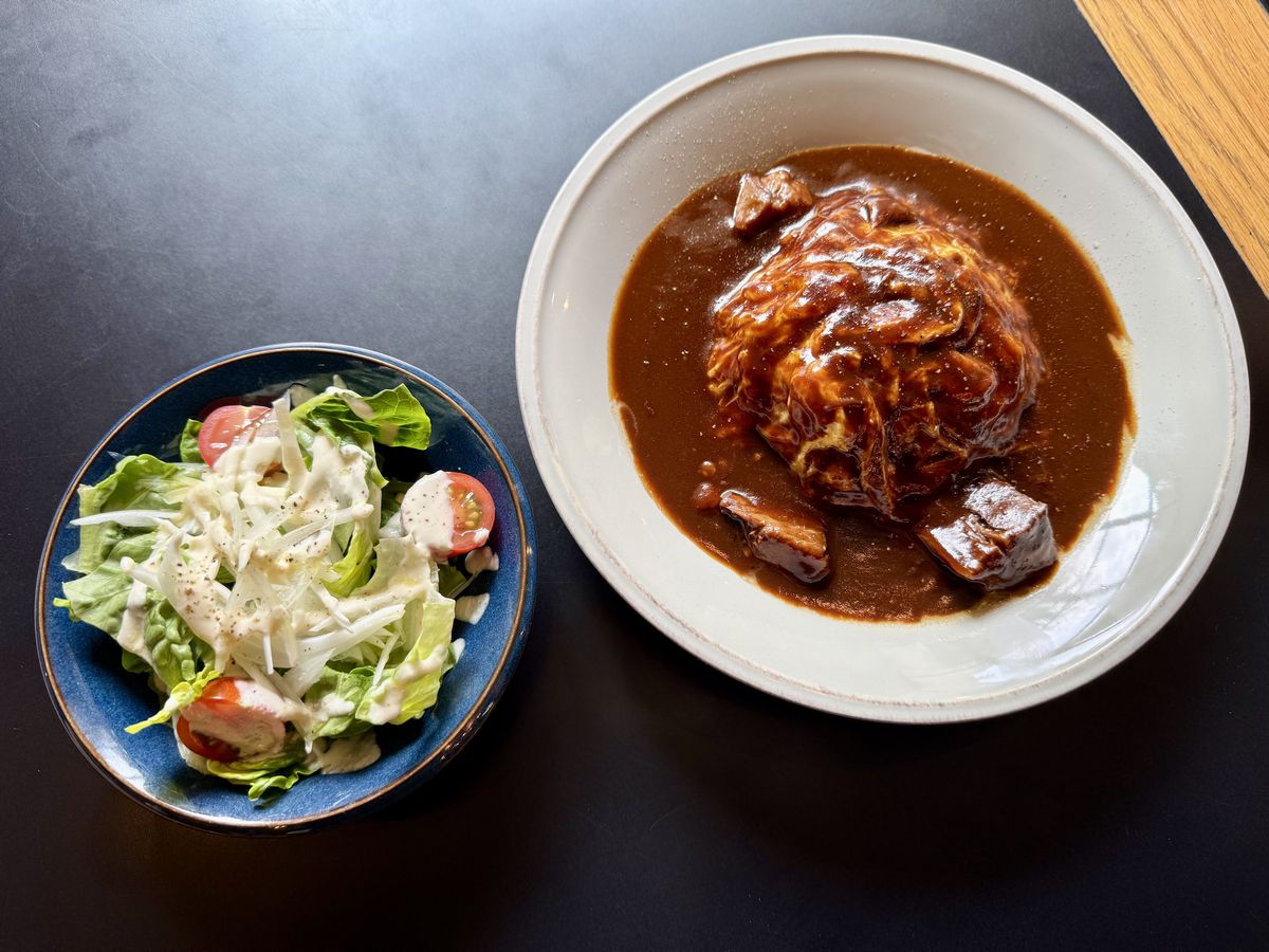 こちらはランチメニューの『国産牛肉煮込みのオムライスランチ(サラダ付)』です。
