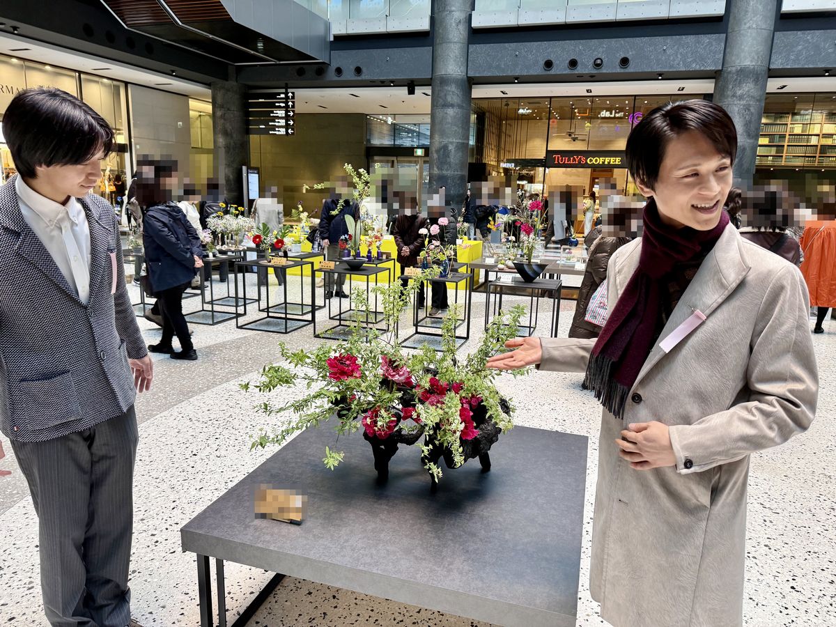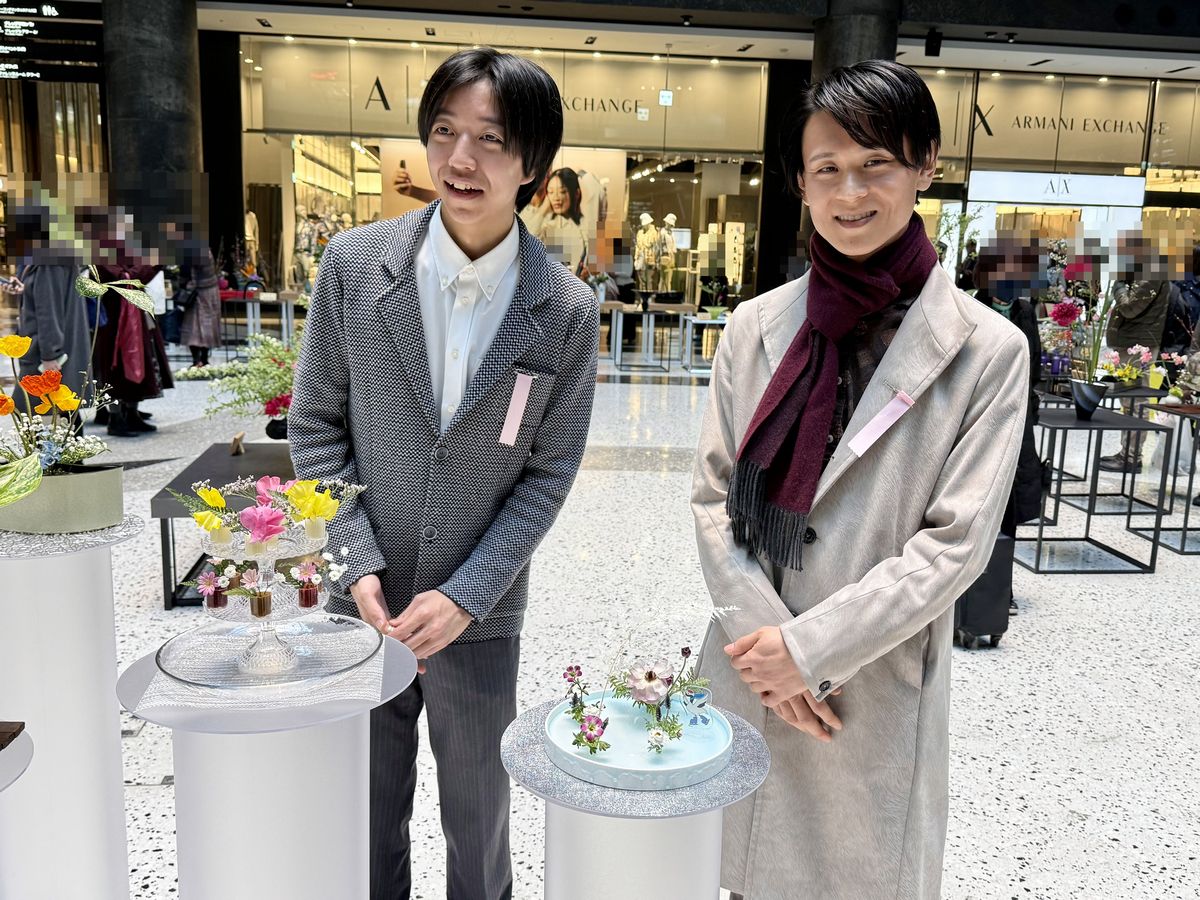お二人とも、「伝統をきっちり踏まえながら、今回のような新しい環境での挑戦や、いけばなを見たことがなかった方に気軽に花を見てもらえる場所づくりなどが、いけばなを未来へつなげていくことだと考えています。」と述べられていました。
