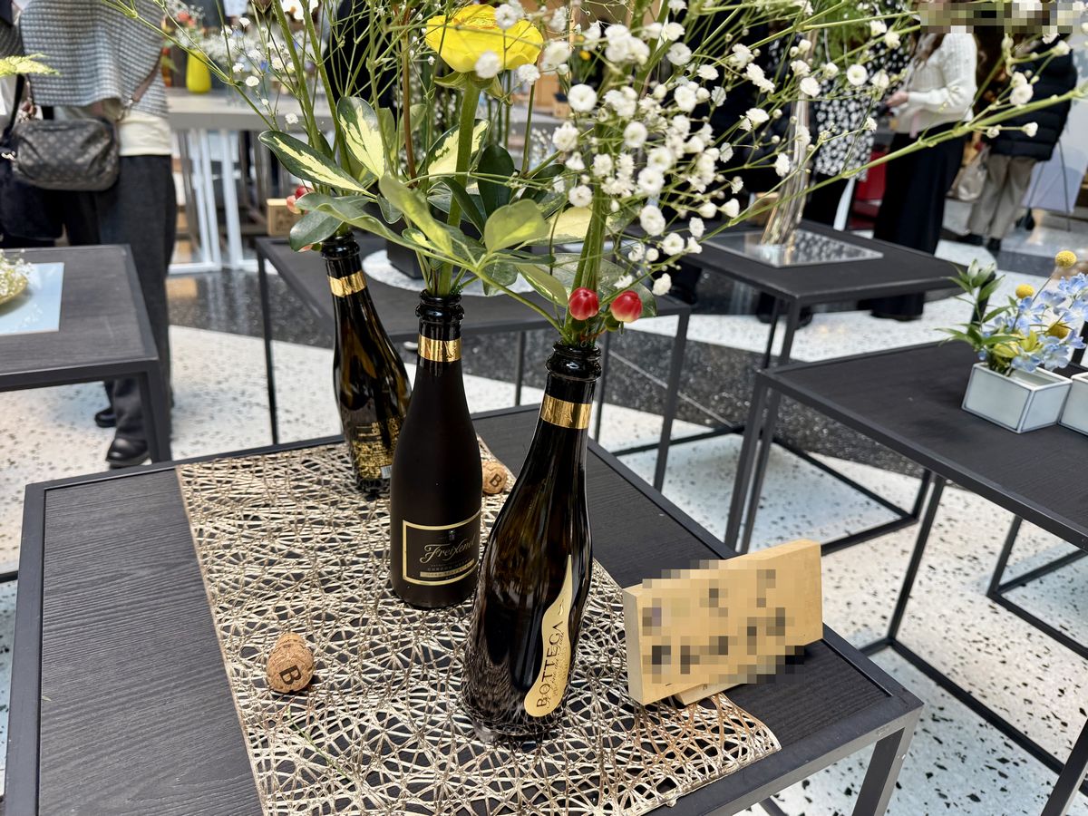 こちらはボトルを花瓶にしており、現代アートのような作品となっています。