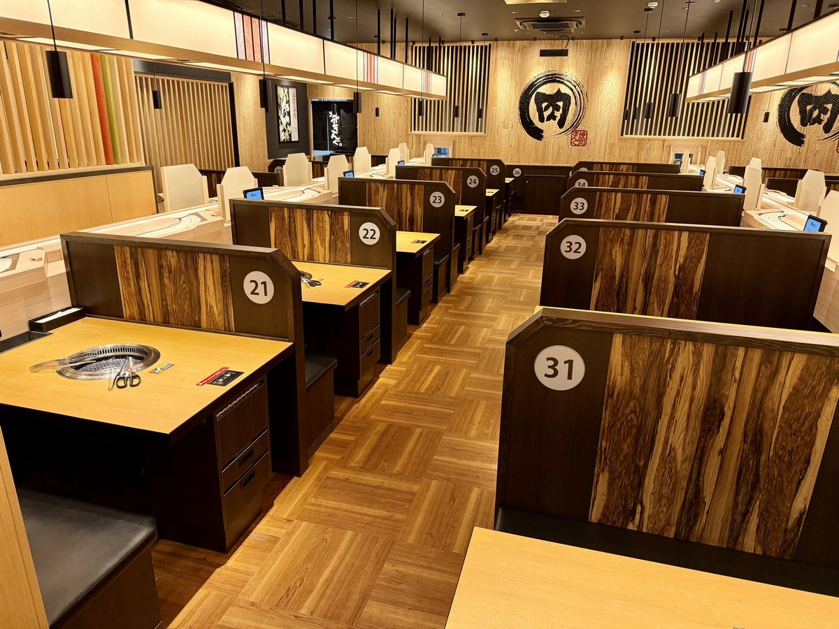 各テーブルには無煙ロースターが設置されており、煙やにおいが広がりにくい設計で快適に焼肉を楽しめ、衣類へのにおい移りが気になる方にも配慮されています。