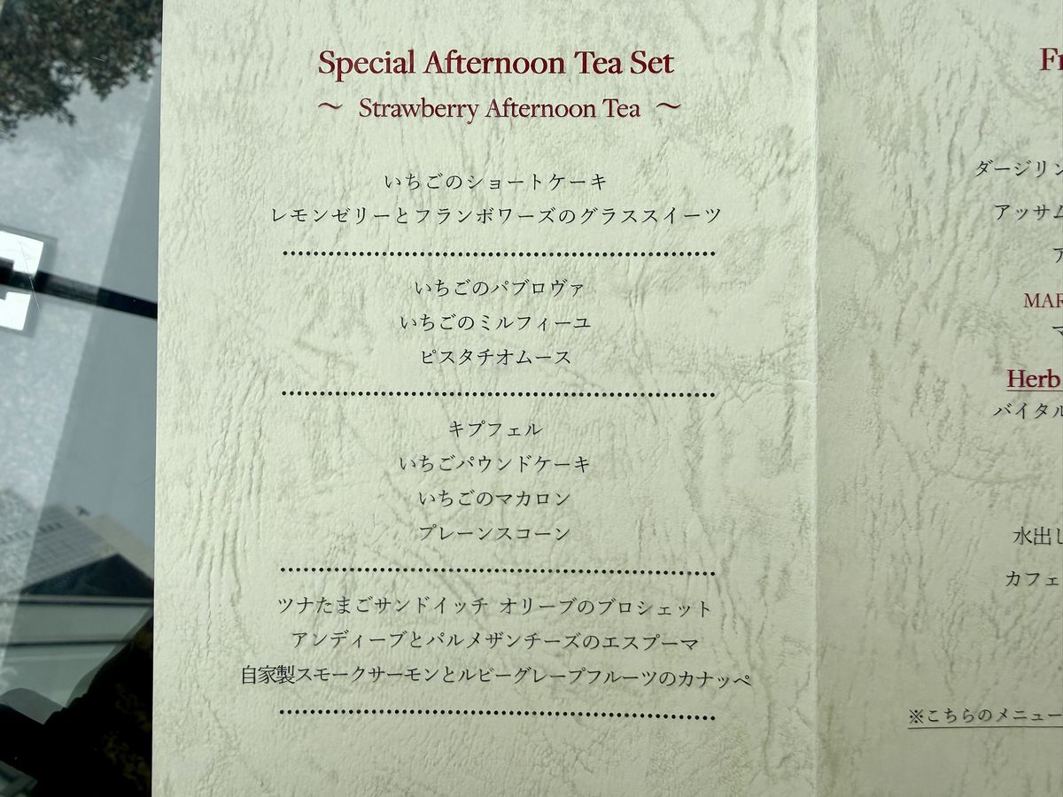 こちらが『ストロベリーアフタヌーンティー』のメニュー表です。