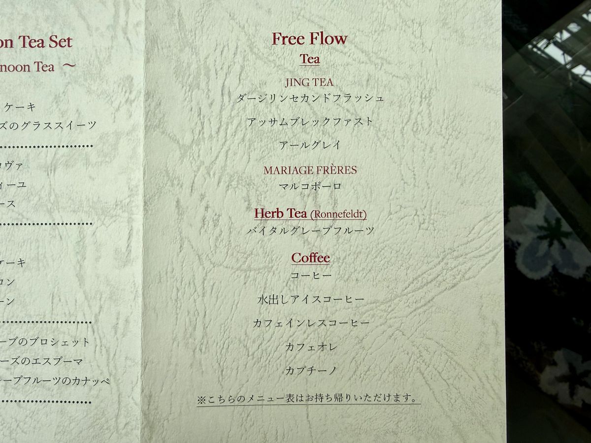 こちらは『ストロベリーアフタヌーンティー』に付いているドリンクのメニュー表で、おかわり自由となっています。