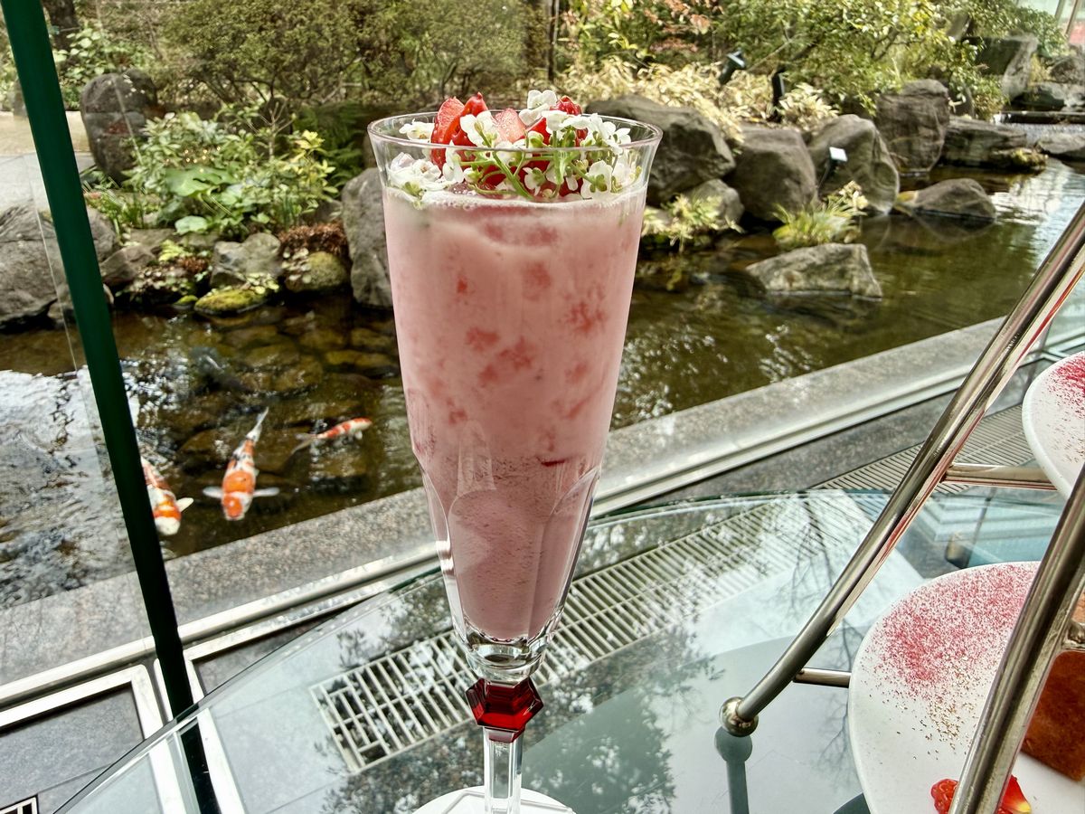 こちらは『ストロベリーアフタヌーンティー』のドリンク付きプランに付いている『Blooming Amarin』というドリンクで、バーテンダーの方がアフタヌーンティーに合わせて特別に考案した春の訪れを祝うノンアルコールドリンクとなっています。