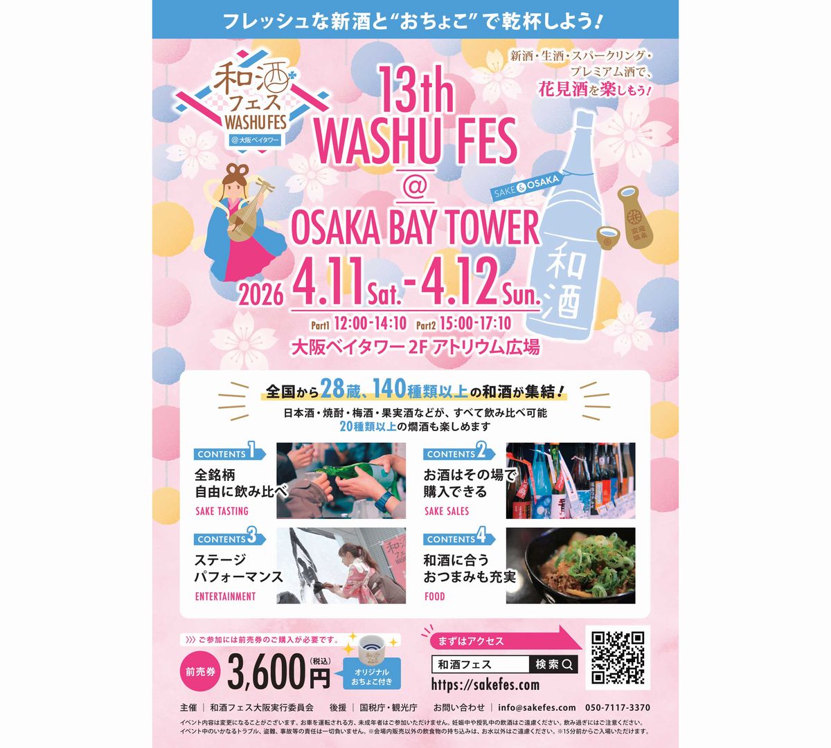 2026年4月11日(土)・4月12日(日)の2日間にかけて、『第13回和酒フェス@大阪ベイタワー』というイベントが開催との情報をいただきました!